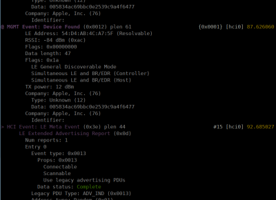 Btmon : outil en ligne de commande qui permet de générer un log très détaillé des informations liées aux appareils détectés