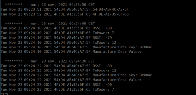 Un petit programme bash permet d'utiliser bluetoothctl pour générer une liste des appareils détectés avec indication de l'heure : btscan-shell.